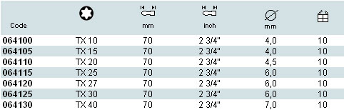 WERA 电批咀技术参数: