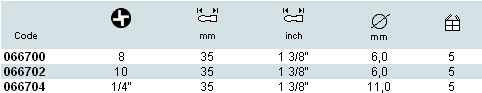 WERA 电批咀技术参数: